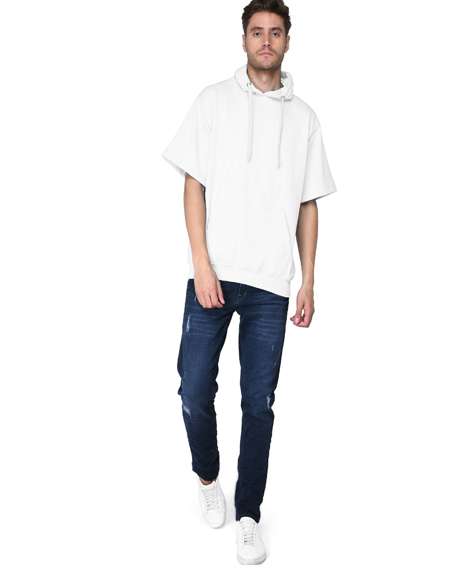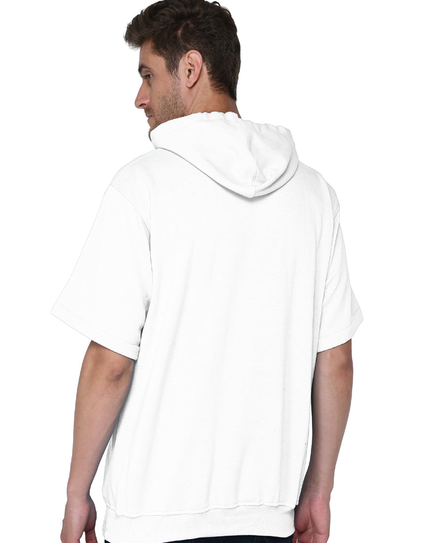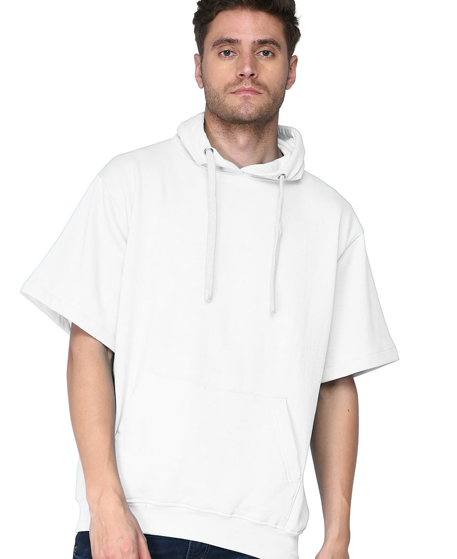SXV Solid Plain Half Sleeves Sweatshirt Hoodie for Men & Women (White)