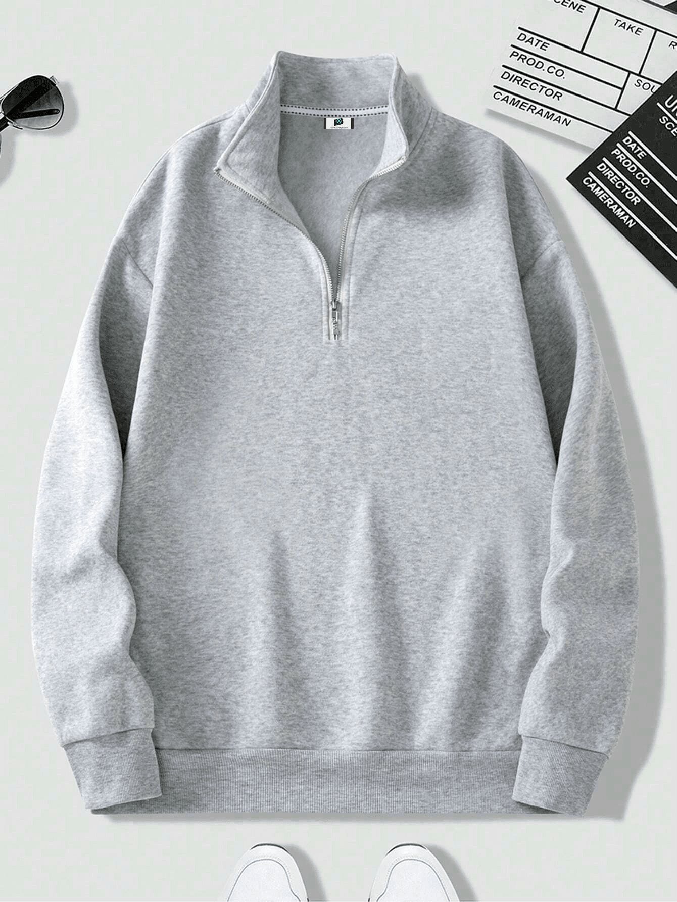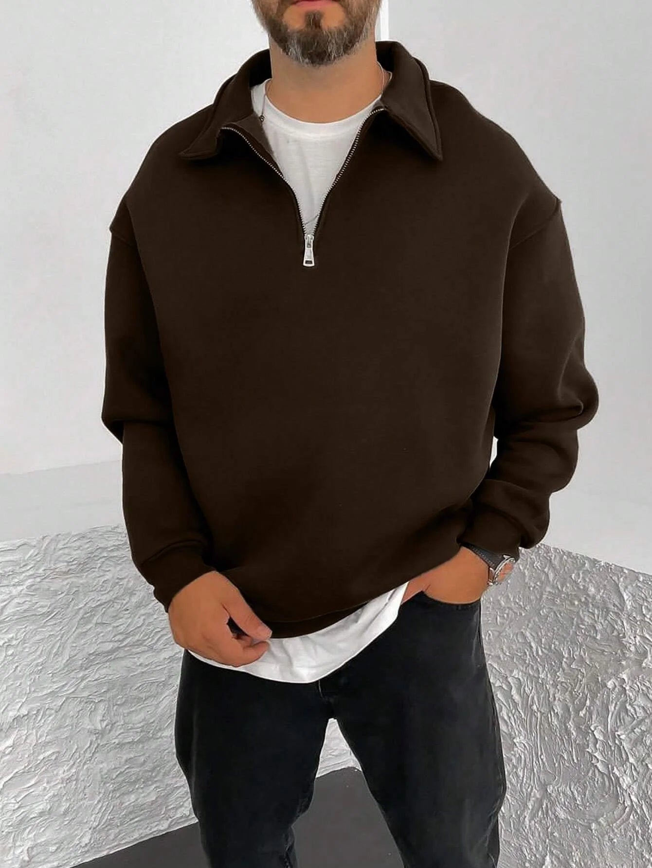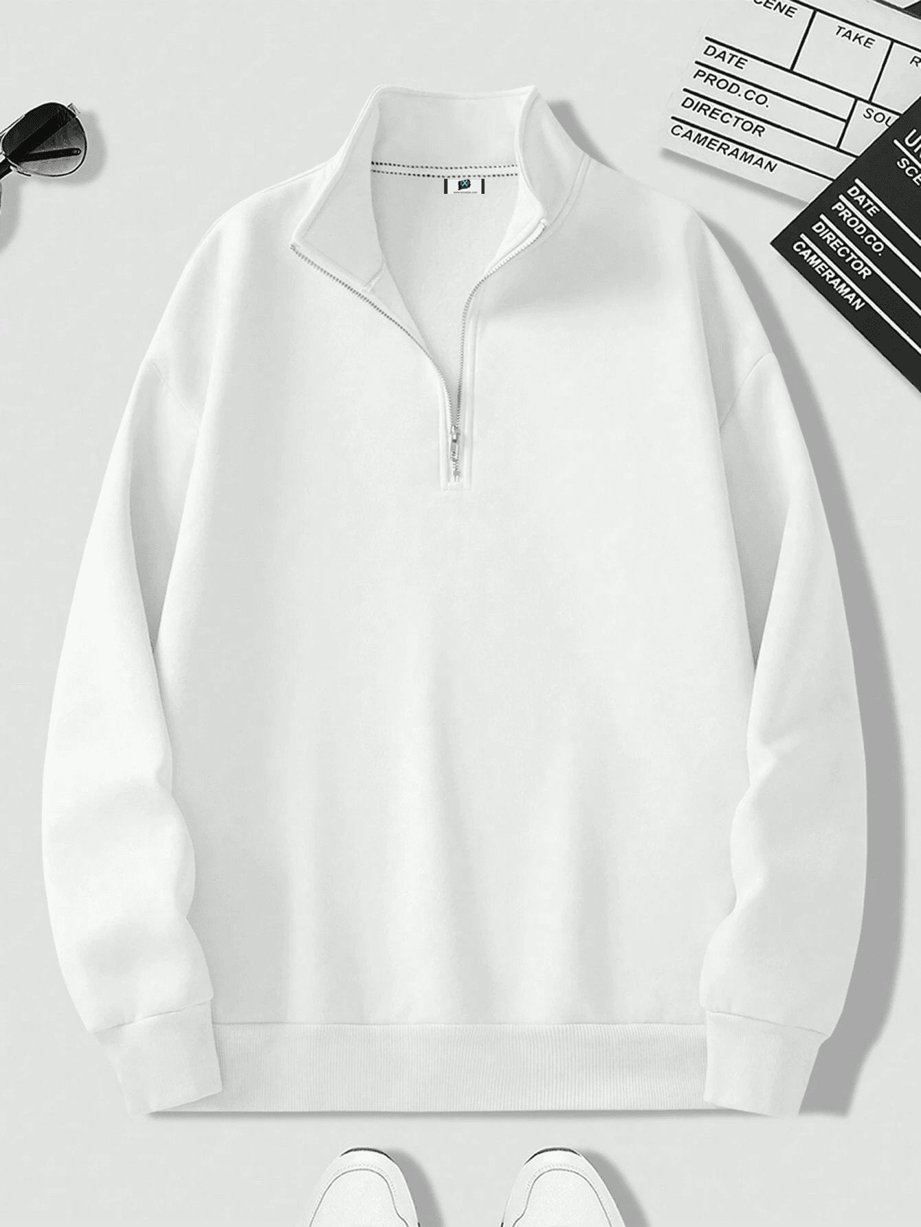 SXV STYLE Solid Plain Half Zipper Collared Sweatshirt for Men