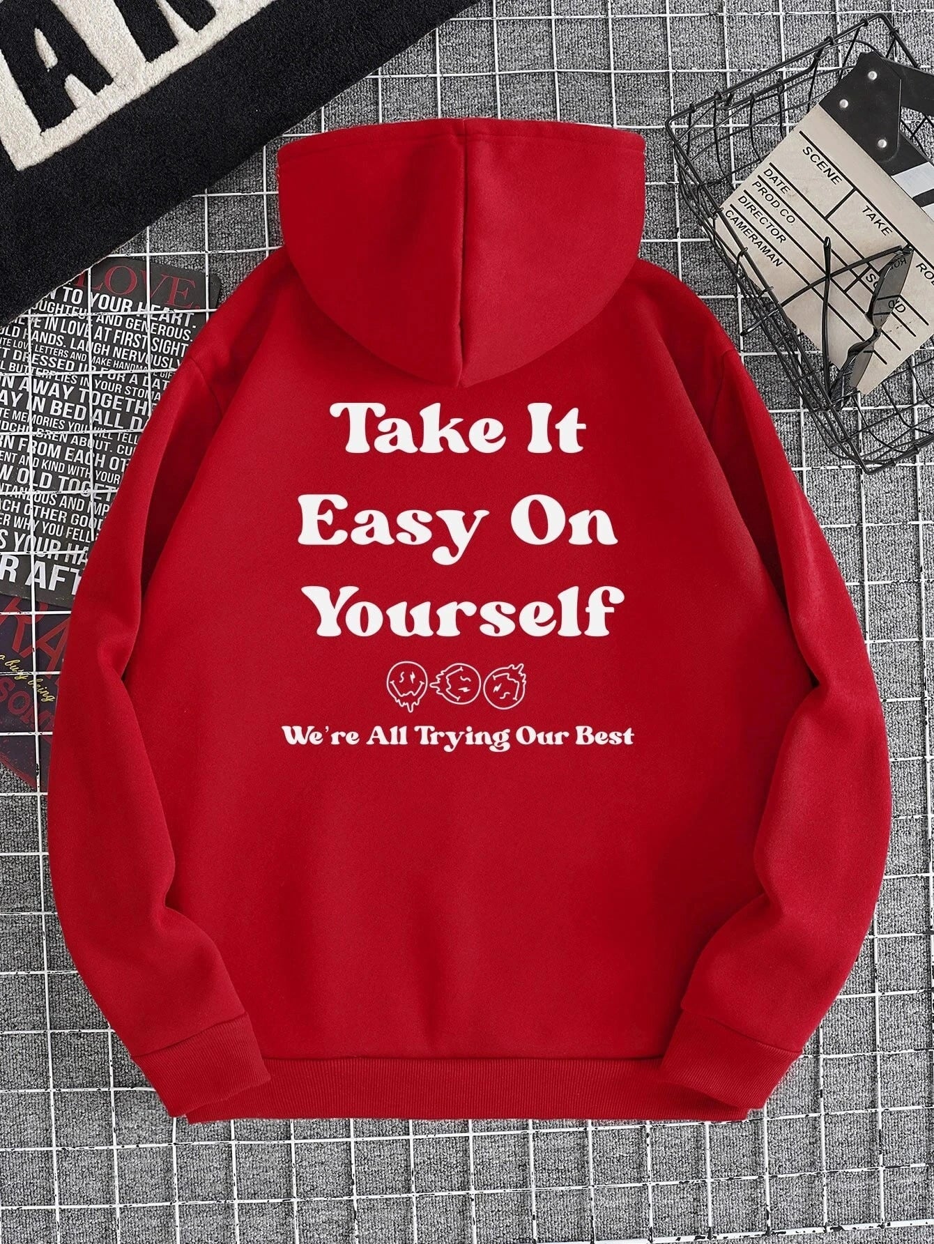 SXV 'Take It Easy On Yourself’ Printed Cool Aesthetic Sweatshirt Hoodie