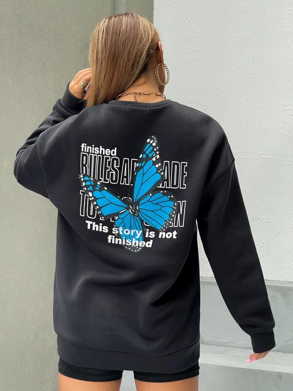 SXV 'The Story Is Not Finished’ Printed Cool Aesthetic Drop Shoulder Oversized Sweatshirt