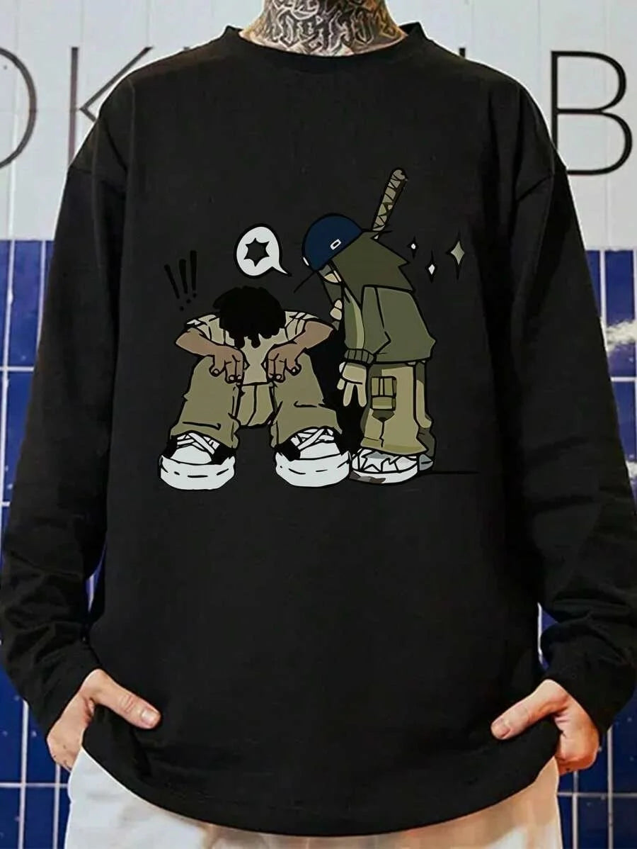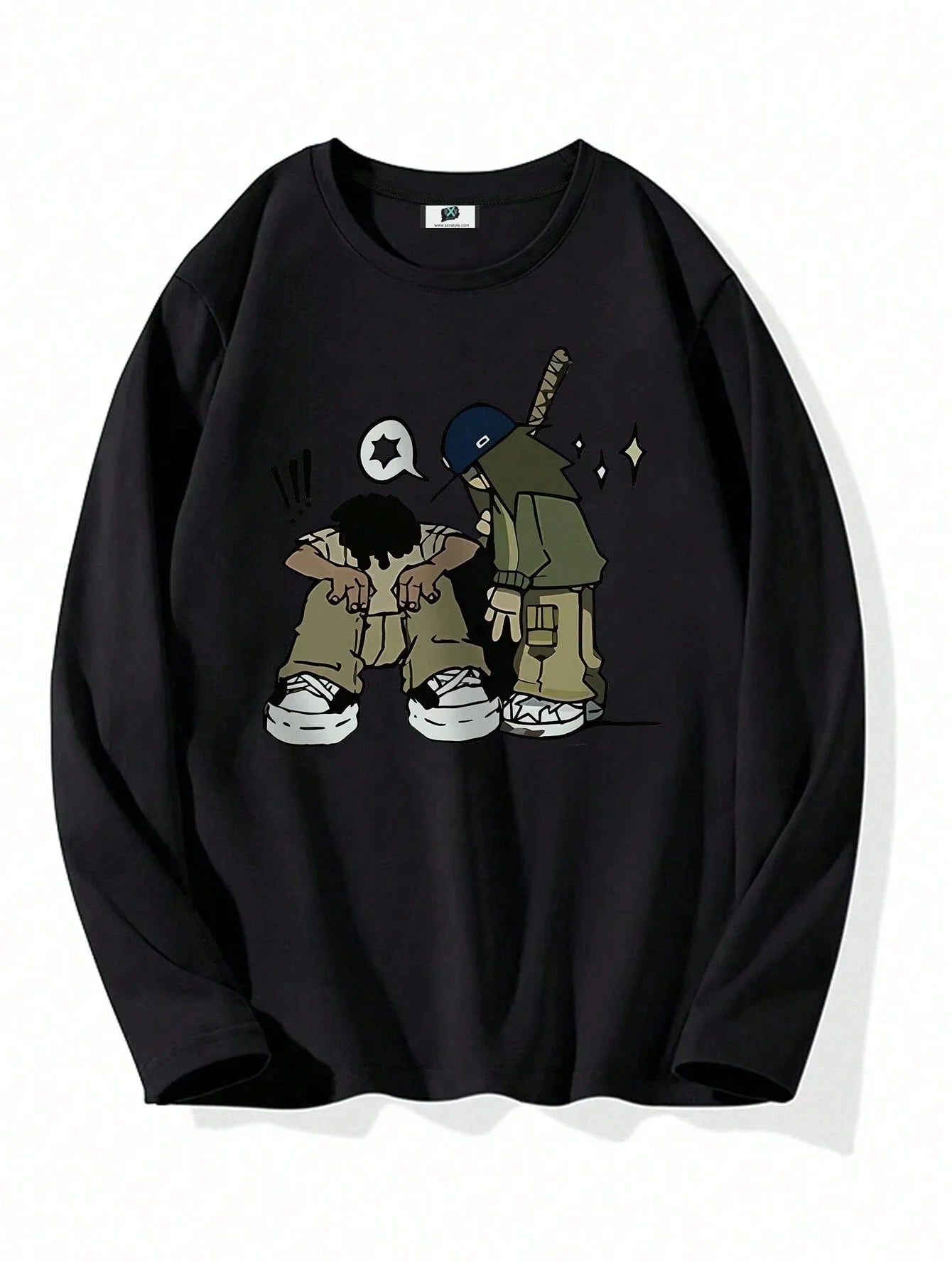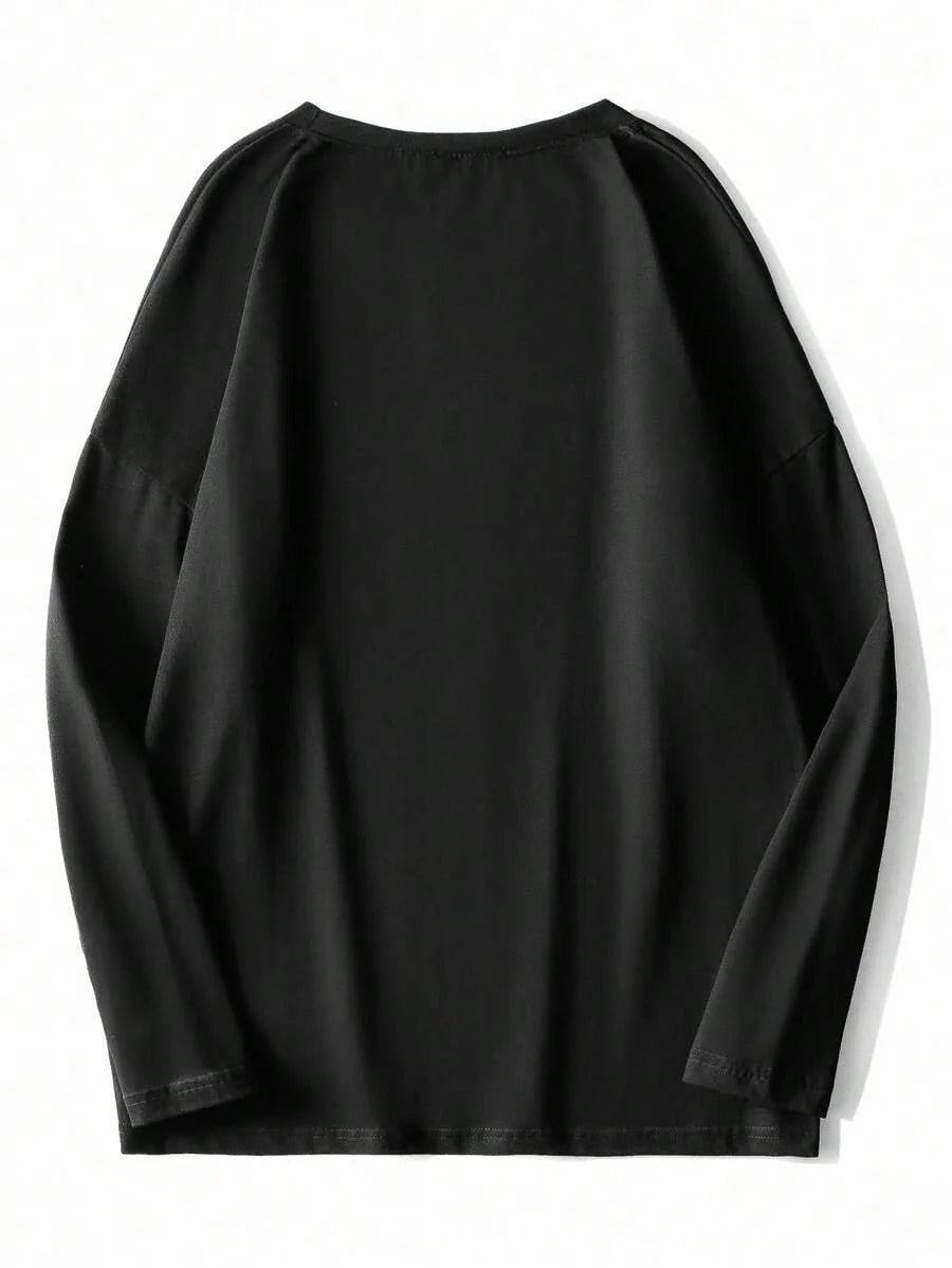 SXV 'tired’ Printed Aesthetic Drop Shoulder Long sleeves Oversized Baggy T-shirt