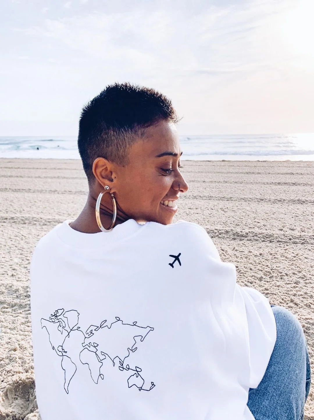 SXV 'travel the world’ Printed Cool Aesthetic Drop Shoulder Oversized Baggy Sweatshirt
