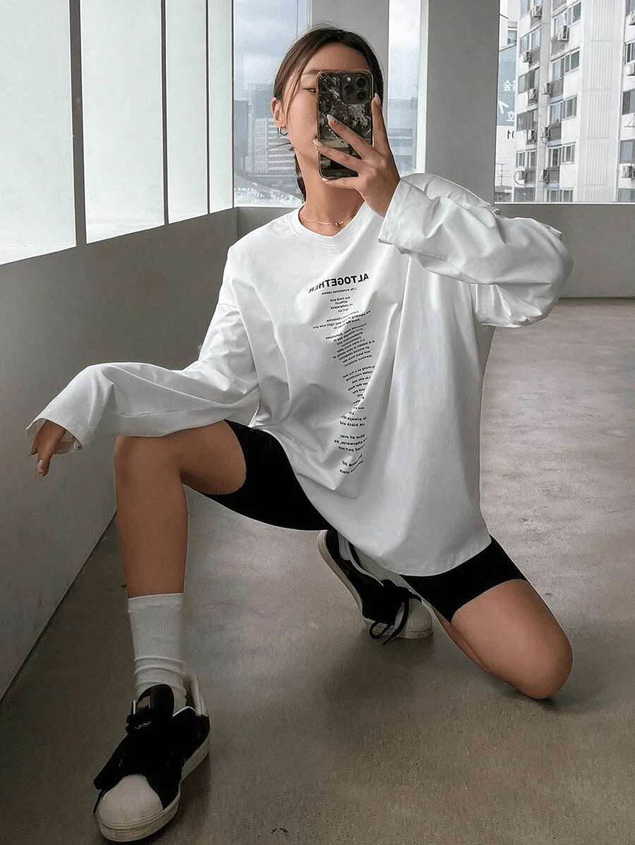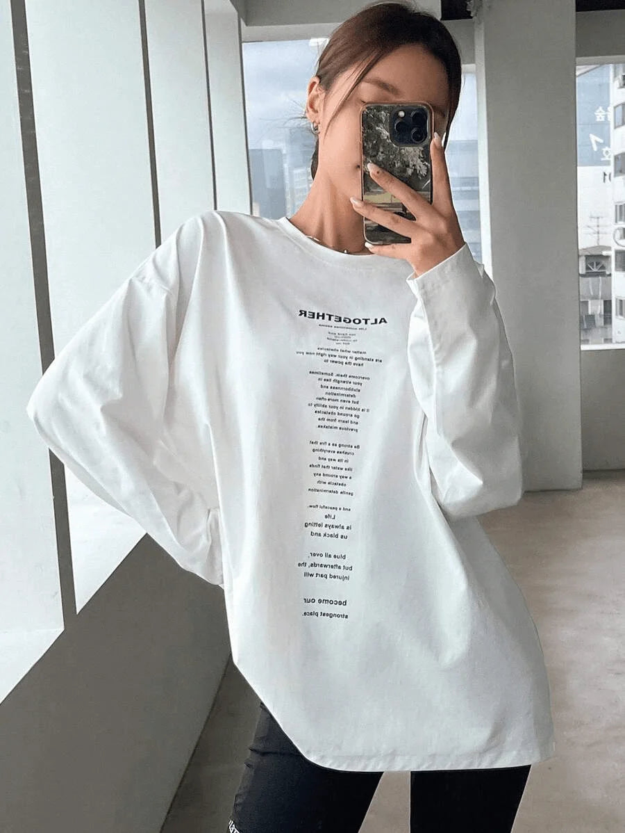 SXV 'ALTOGETHER’ Printed Aesthetic Drop Shoulder Long sleeves Oversized Baggy T-shirt