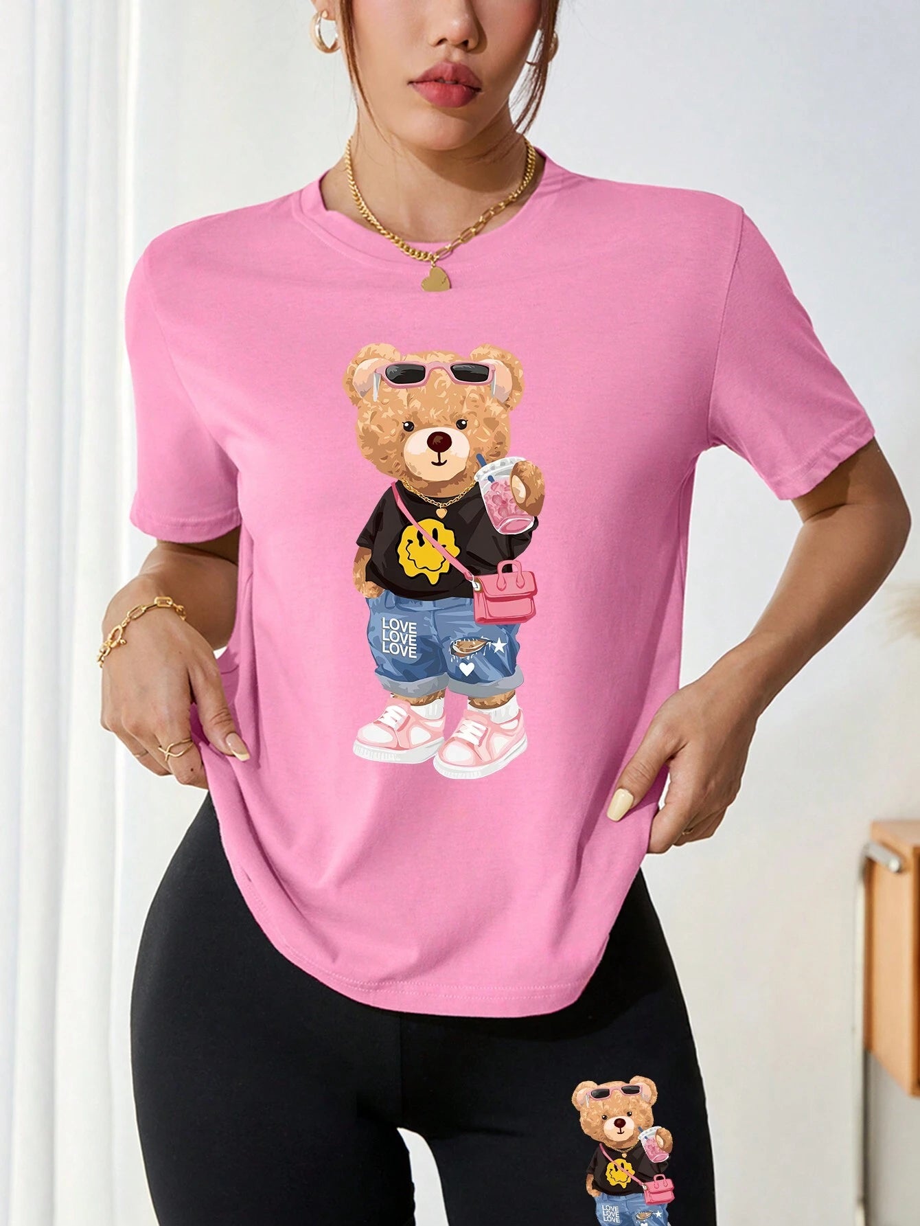 SXV Women Cute Teddy Short Sleeve T-Shirt And Cycling Shorts Summer Outfits