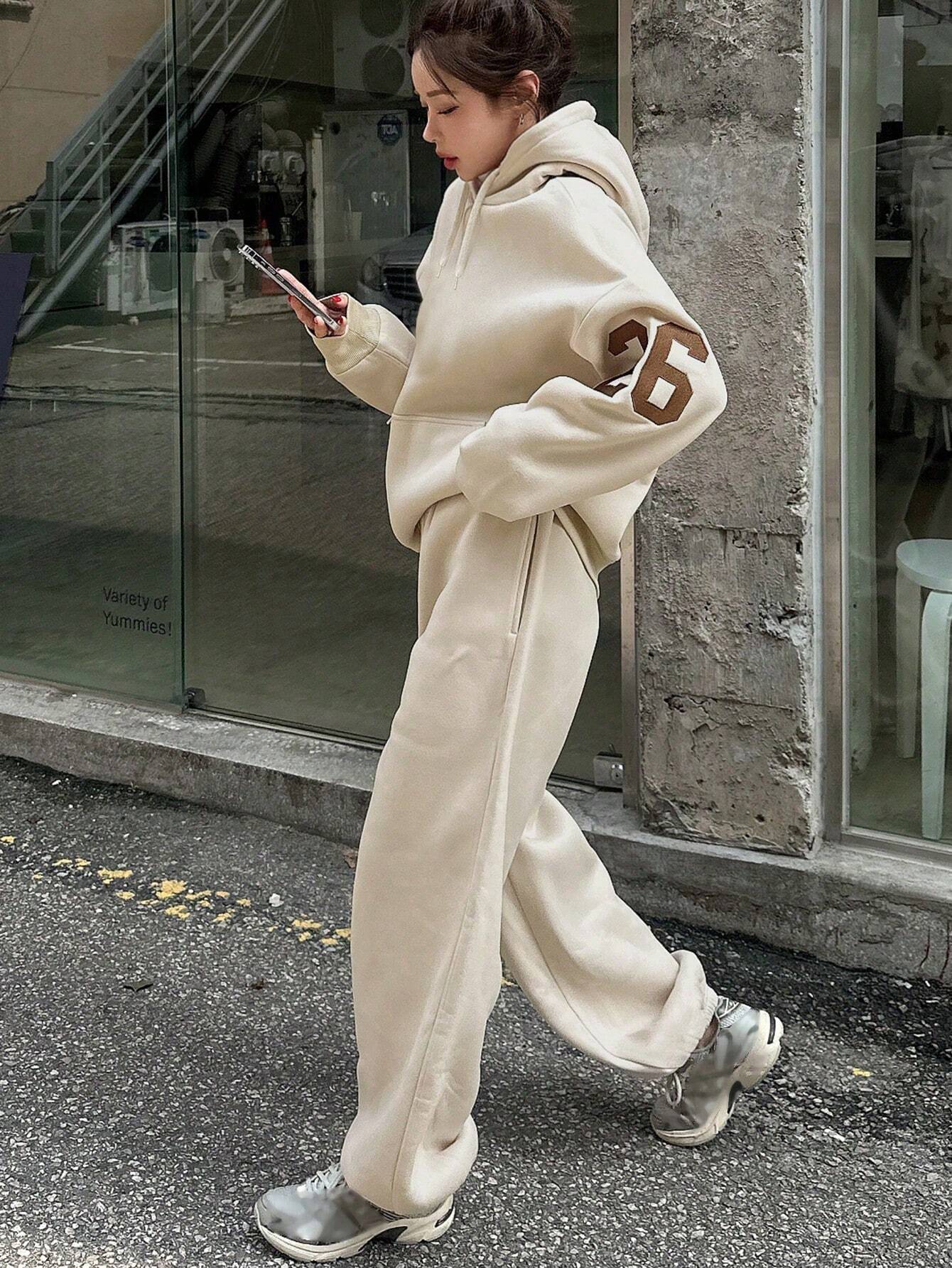 SXV Women Hooded Sweatshirt And Drawstring Hem Sweatpants Set, Casual