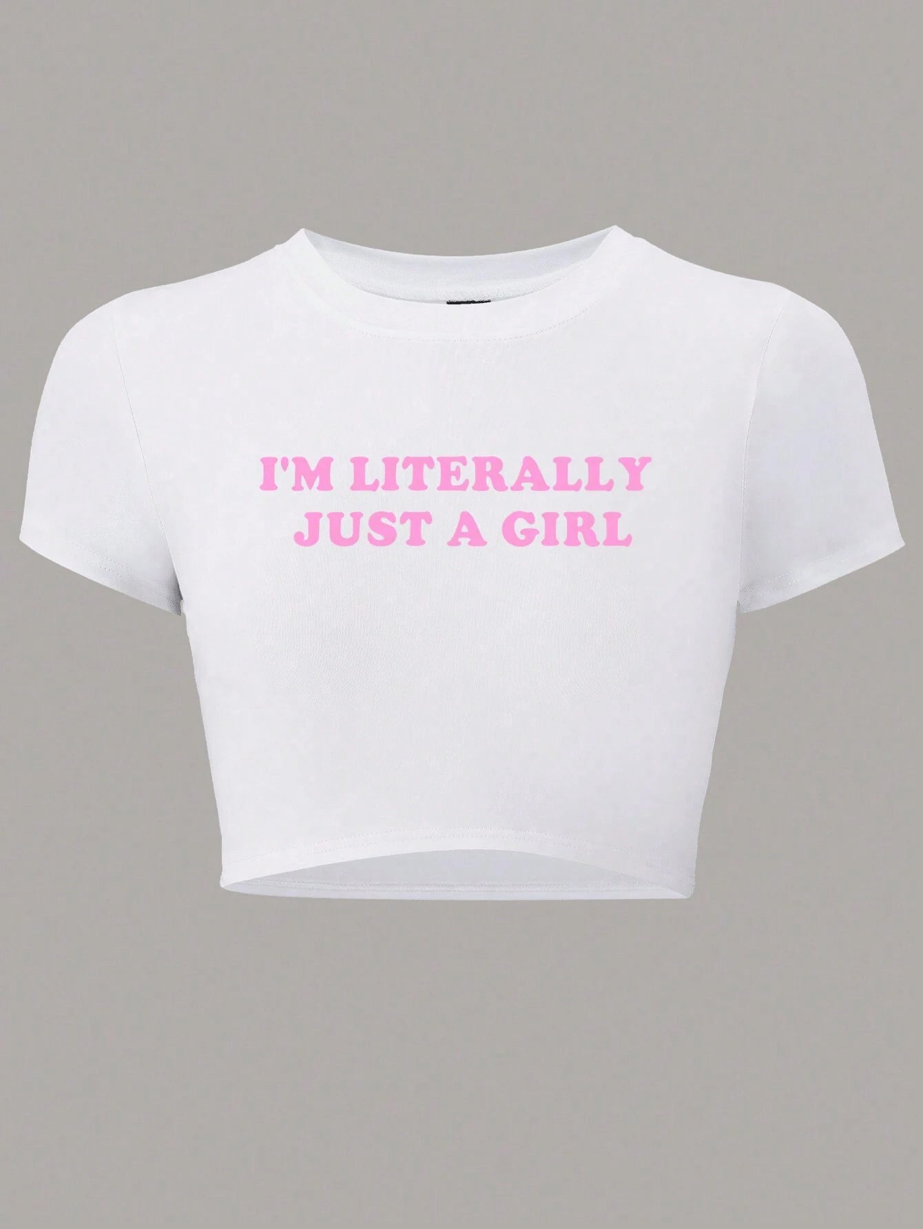 Make a bold statement with this playful crop top featuring the cheeky "I'm Literally Just A Girl" slogan print. Designed with a flattering slim fit that hugs your curves in all the right ways, this piece is perfect for anyone who loves witty, relatable fashion. Whether you're heading out with friends or keeping it casual, this crop top combines comfort with attitude. Pair it with your favorite jeans, skirts, or high-waisted bottoms for an effortlessly cool vibe that celebrates your personality.