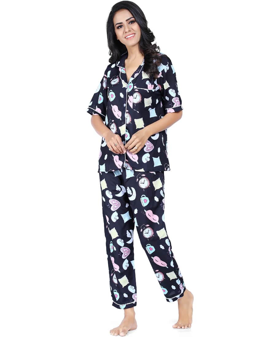 SXV Women's Cotton Printed Night Suit Pyjama Set : Clock MASK Mug (lowest price-non returnable)