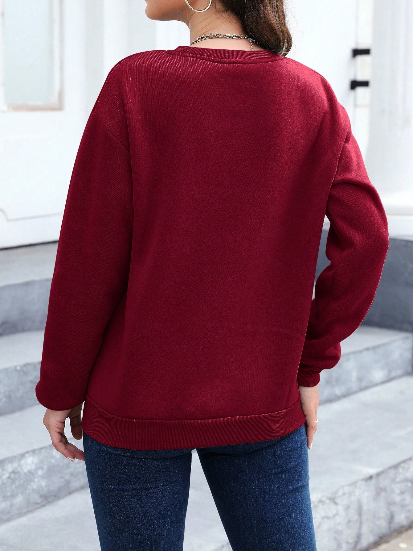 SXV Women's Heart Printed Drop Shoulder Sweatshirt