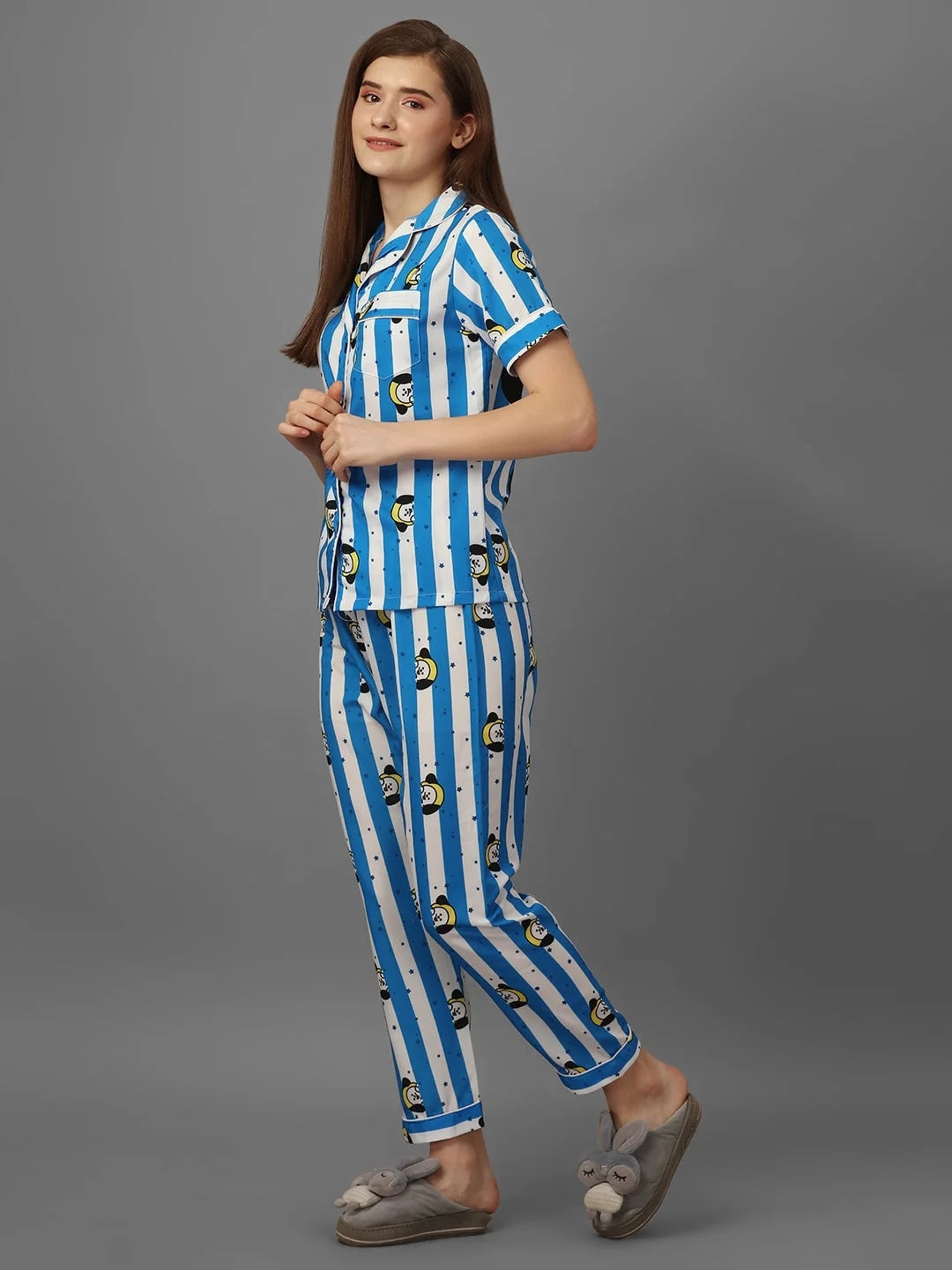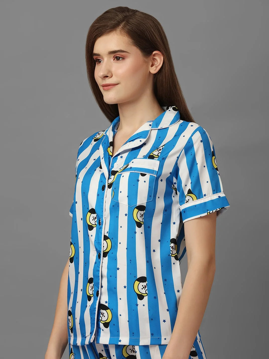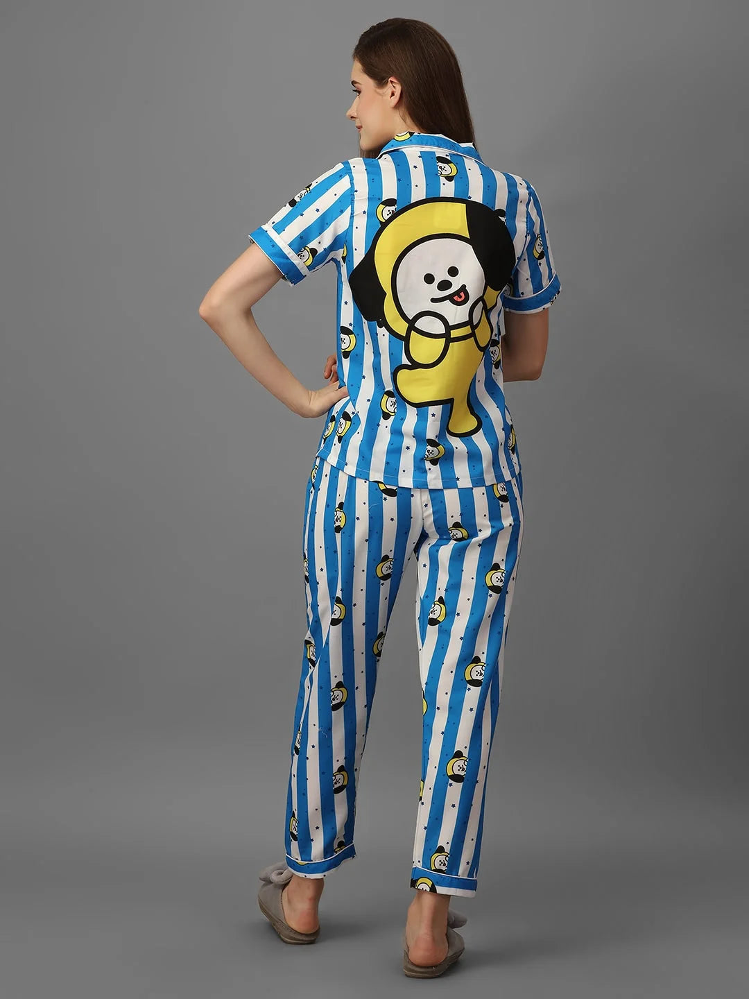 SXV Women's Rayon Printed Night Suit Pyjama Set : BTS BLUE