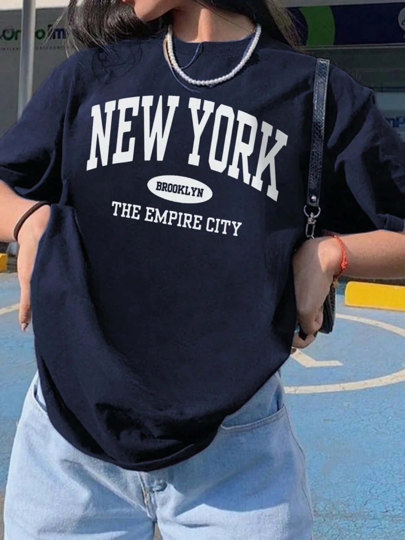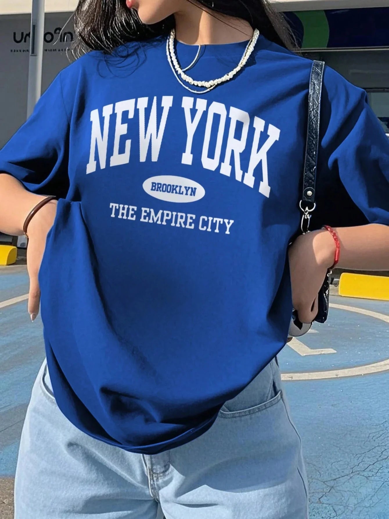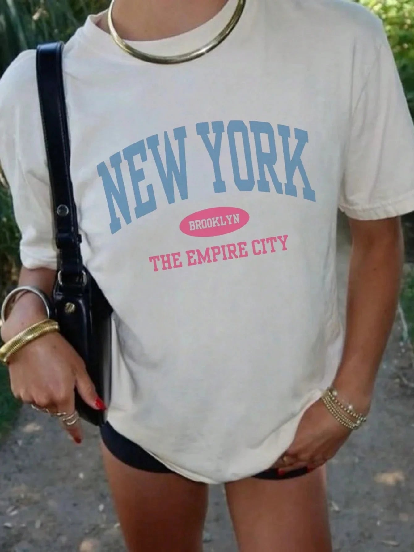 SXV Women's Summer Letter Print Off-Shoulder Loose Casual T-Shirt