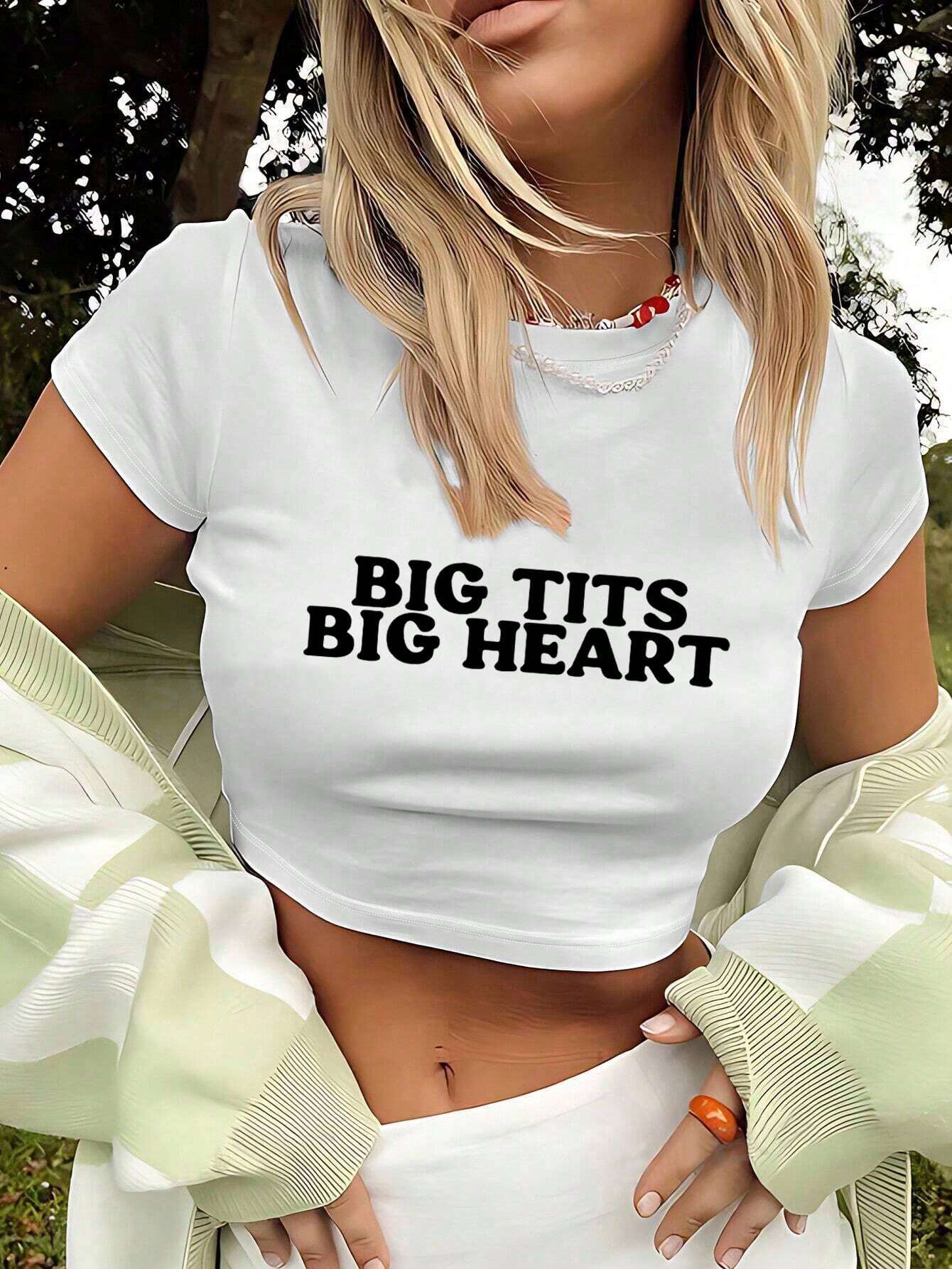Show off your playful side with our SXV Women's Summer Short Sleeve Crop Top! This casual t-shirt features a fun slogan print - "BIG BIG HEART" - to add a pop of personality to any outfit. Made with soft and breathable fabric, it's perfect for staying cool and stylish during those warm summer months. Trust us, your heart will thank you.